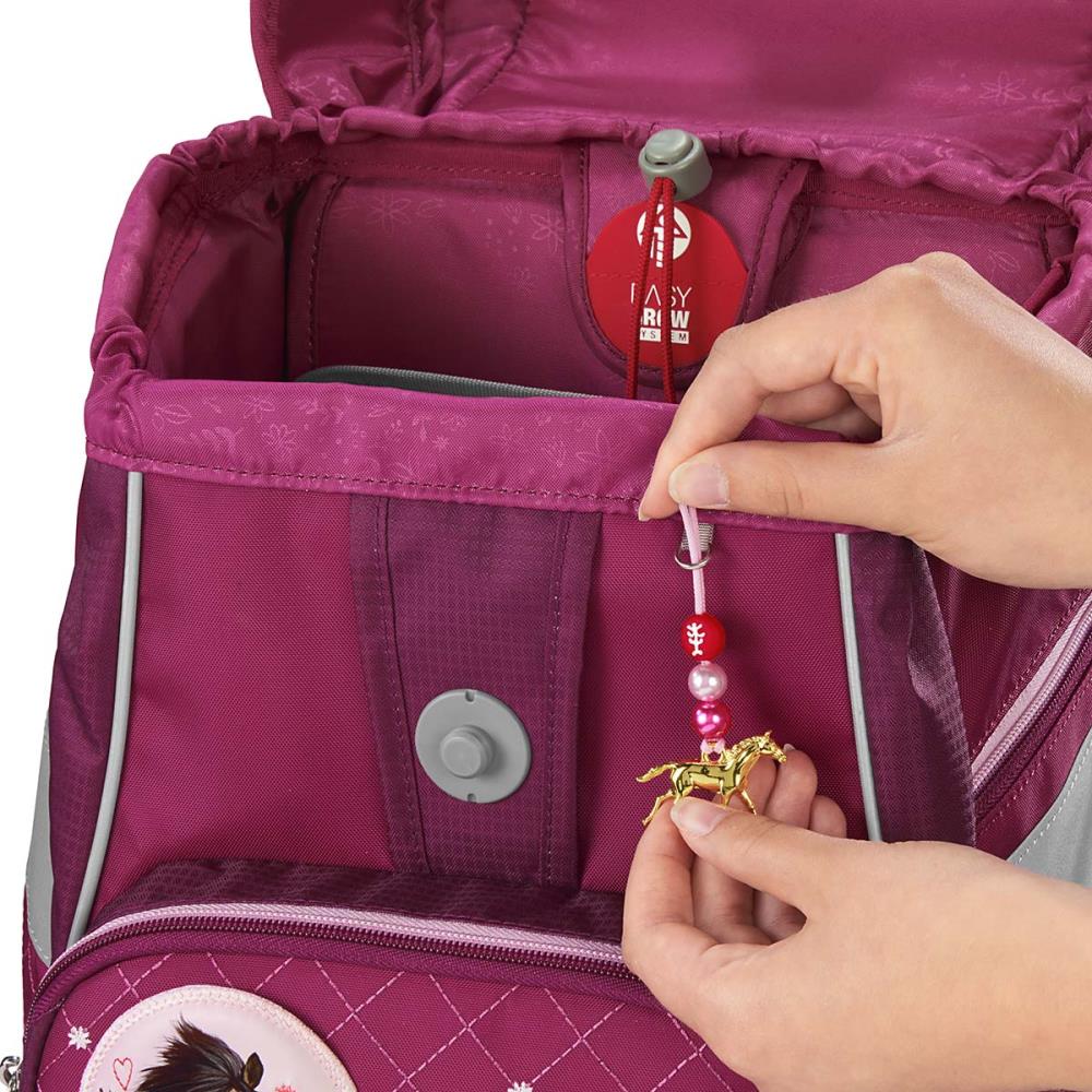 - Zwei Applikationen zur Befestigung an den Magnetflächen des Schulranzens oder Schul- und Kindergartenrucksacks, sowie ein austauschbarer Anhänger.